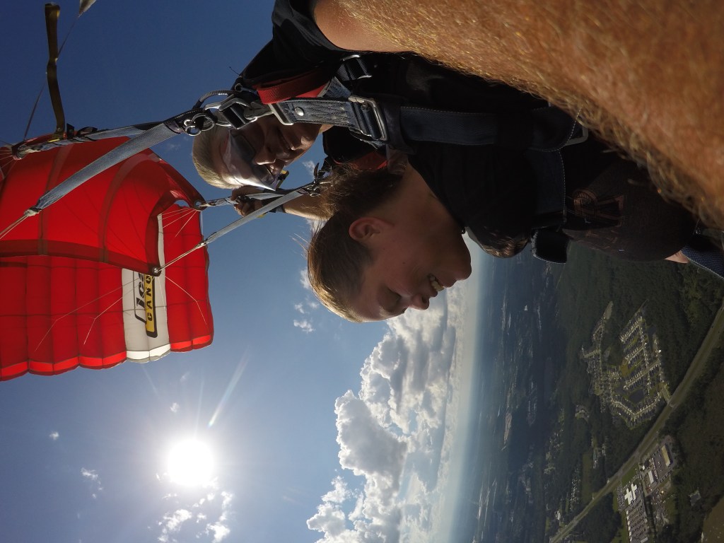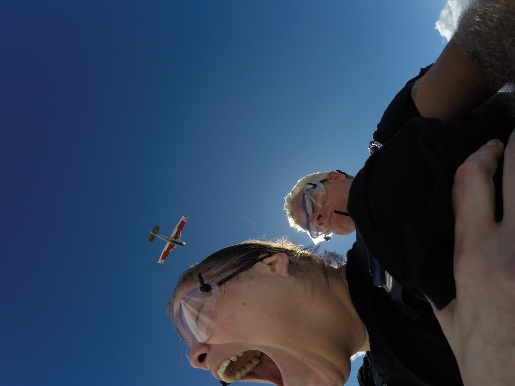 The skydive instructor was amazing and talking me through everything. He told me to look around, take it all in. When we got through the clouds, I screamed LOOK, its my car!! I know that I shouted YEE-HAW at some point (because I’m a little bit Country) , and my ground crew captured that moment on camera as they watched the tiny dot in the sky become me, flying high.