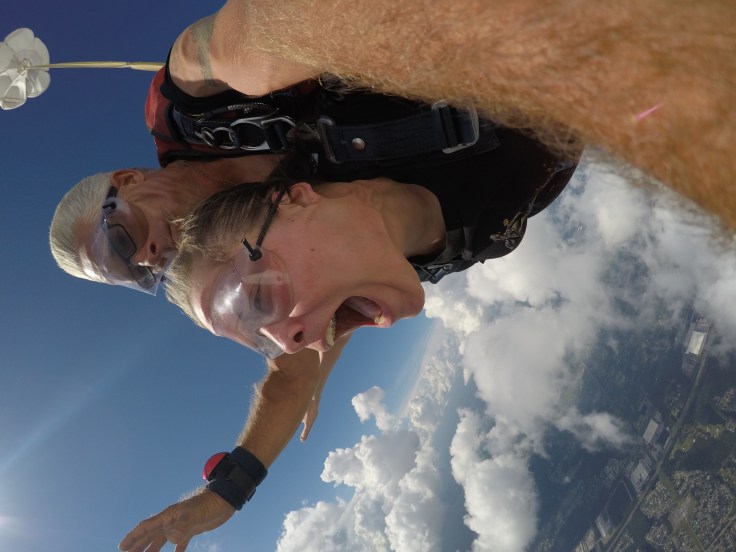 There I was, standing on the wing of a tiny plane hovering high over Jacksonville. That was when I felt it; before the instructor even tapped my shoulder to let me know it was time. I was ready. I smiled to myself, and then I did what some folks have told me made me not the brightest person. I took a step. Just one step and I was in the air, plummeting. The feeling was at some points indescribable. I was falling, I was dancing, I was flying. I was laughing because the wind was so fast and strong that my cheeks were pushed back and making my teeth dry. I tried to lick them, and that made me laugh even harder! My heart was pounding and everything felt like a rush of emotions. This is what I imagine people feel just before they die. I have more than once been in the position where I could die, but I have rarely felt fear. This was no different. I was given the warnings, I signed the waivers, and still..I was unafraid. I embraced the feeling and lived it.