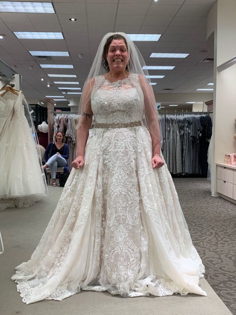 I have long been told that many little girls grow up dreaming of wedding dress shopping and trying on all the best there is to offer. If you havent figure it out by now, I am not most girls. I know that I dressed up my barbies for weddings on multiple occasions. I thought at one point I would marry Freddie Mercury, but alas that never happened for me. I also remember very vividly a character in one of my favorite shows saying that she thought she was missing the “bride gene”. I was so excited to pick the venue, the food, the decorations and everything else. But dress shopping just didnt seem appealing to me. I happily made the appointment, but wasnt really looking forward to it. I had a dream a few days beforehand that I actually ran away and went to my childhood home. An interesting detail because I now lived twelve hours from there and it would be a long trip just to avoid looking bad in some ruffles.